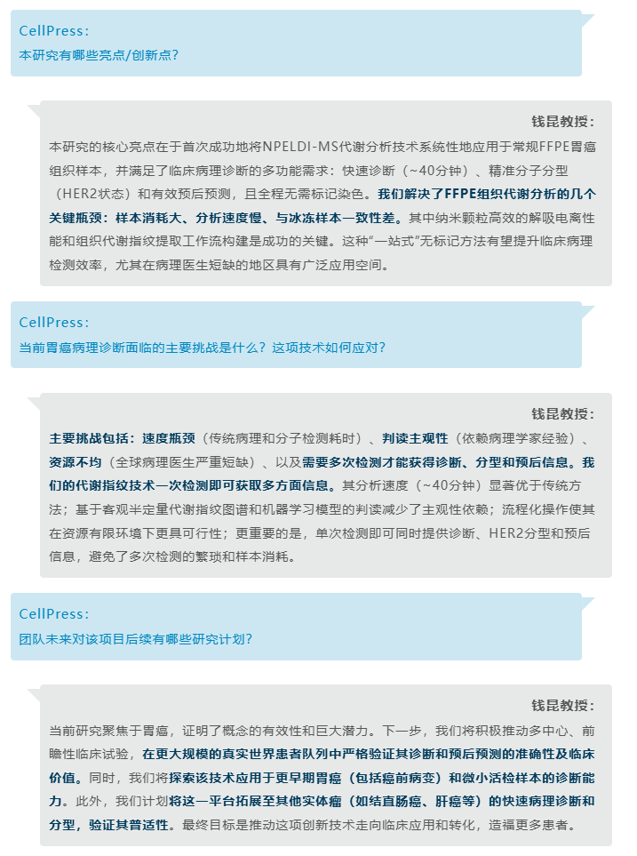 胃癌病理诊断新突破:钱昆团队开发快速无标记组织代谢指纹技术 | Cell Press对话科学家